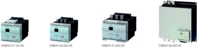 Устройства плавного пуска Siemens представлены серией SIRIUS 3RW в стандартных изделиях 3RW30, 3RW31, 3RW40 и 3RW44 — специального назначения. Устройства плавного пуска Siemens SIRIUS 3RW прдназначены для пуска: вентиляторов, строительных машин/смесителей, эскалаторов, кондиционеров, конвейеров, приводов, насосов, прессов, транспортеров, воздуходувок, компрессоров и холодильников.